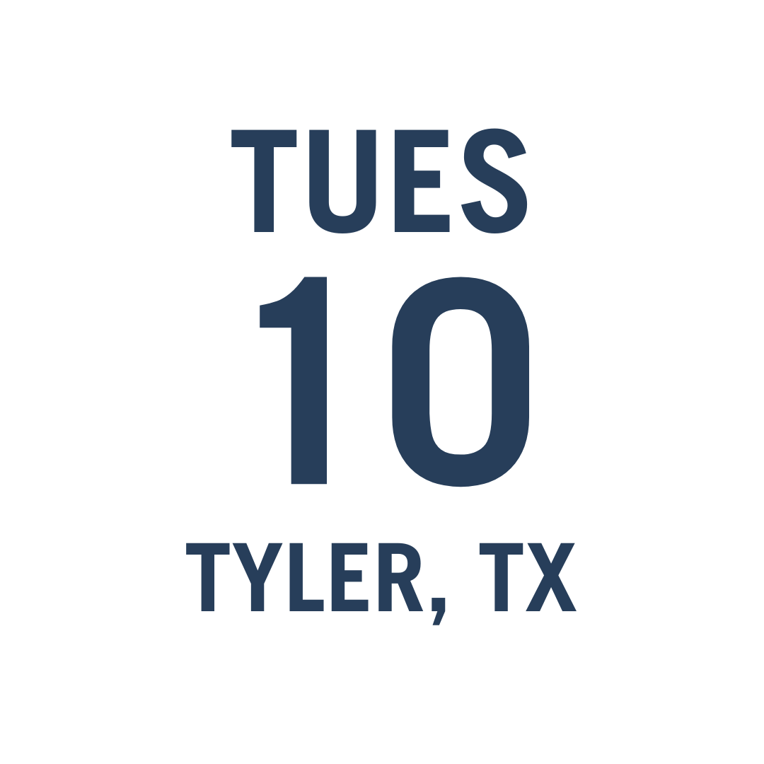 - Where: Holiday Inn Tyler – Conference Center, 5701 S Broadway Ave, Tyler, TX 75703