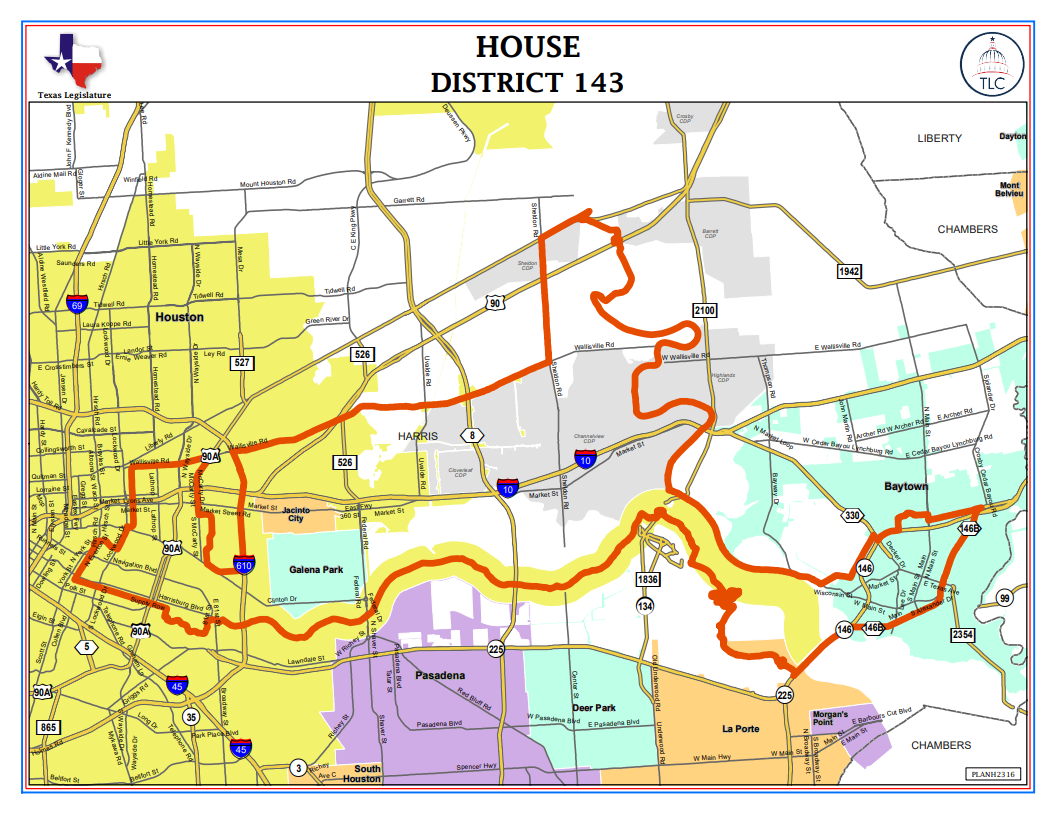 Baytown (Part), Channelview, Cloverleaf, Galena Park, Houston (Part), Jacinto City, and Sheldon (Part)