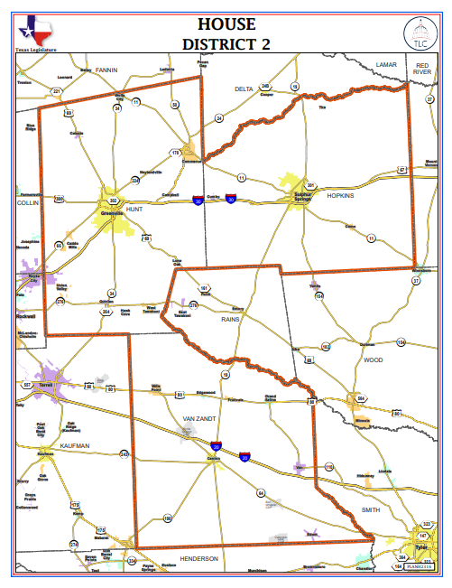 Ben Wheeler, Callender Lake, Caddo Mills, Campbell, Canton, Celeste, Como, Commerce, Cooper, Cumby, Edgewood, Edom, Fruitvale, Grand Saline, Greenville, Hawk Cove, Josephine (Part), Lone Oak, Myrtle Springs, Neylandville, Pecan Gap (Part), Quinlan, Sulphur Springs, Tira, Union Valley, Van, West Tawakoni, Wills Point, Wolfe City, and Yantis