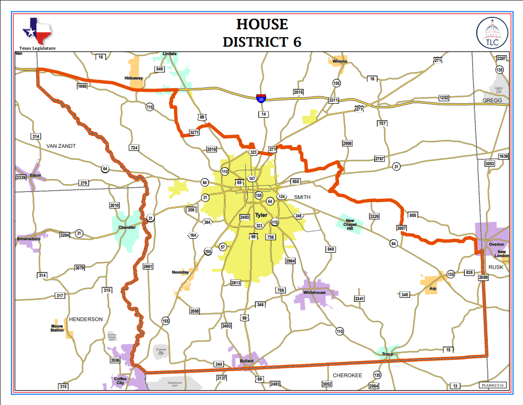Arp, Bullard, Emerald Bay, Lindale (Part), New Chapel Hill, Noonday, Overton (Part), Troup (Part), Tyler, and Whitehouse
