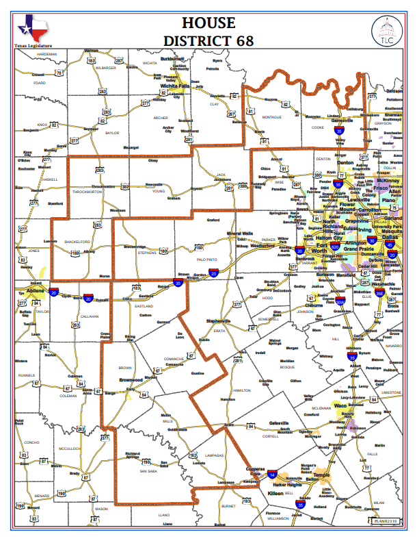 Brown, Comanche, Cooke, Eastland, Jack, Lampasas, Mills, Montague, San Saba, Shackelford, Throckmorton, and Young
