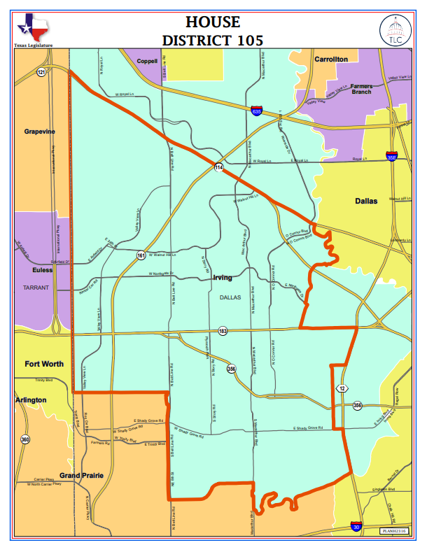 - House District: 105 (Irving)