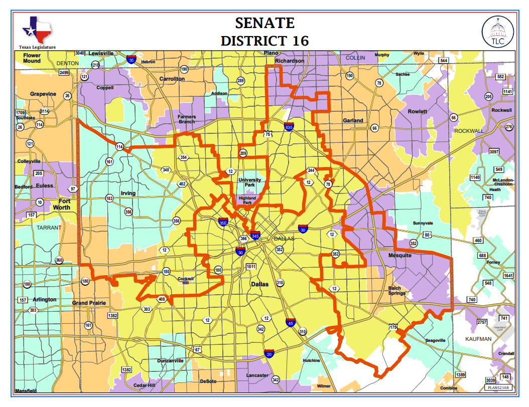 - Senate District: 16 (Dallas)