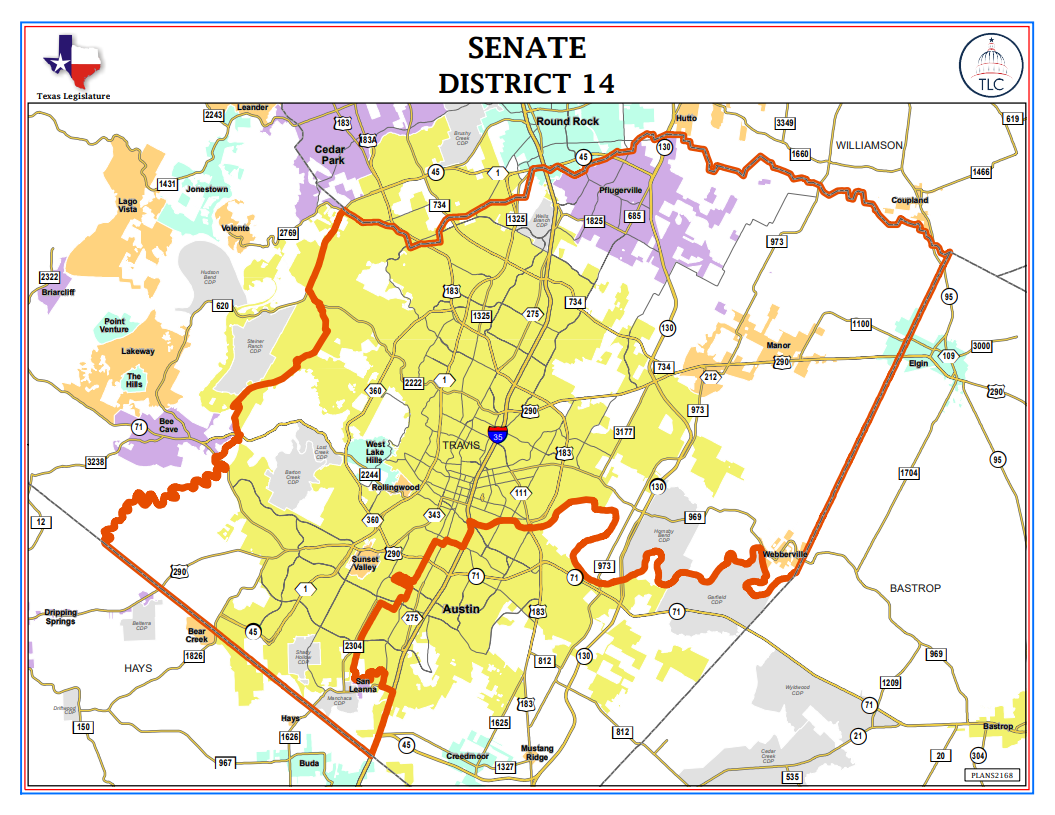 - Senate District: 14 (Austin)